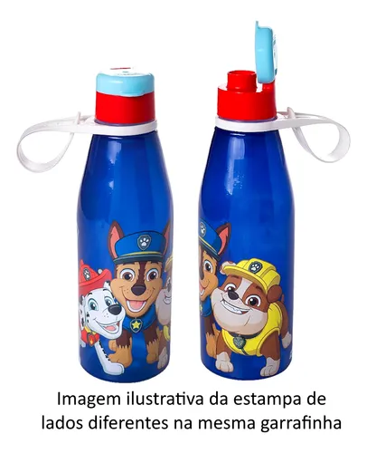 garrafa de água infantil com tema da Patrulha Canina, apresentando os personagens Chase e Marshall.