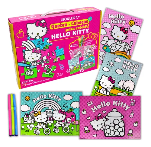 Conjunto de quebra-cabeças da Hello Kitty para colorir, da marca Leo & Leo.